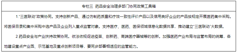 5.強(qiáng)化多部門治理協(xié)同。加快推進(jìn)“三醫(yī)聯(lián)動”改革。藥品監(jiān)管、公安、工信、衛(wèi)生健康、醫(yī)保、發(fā)展改革、財政、科技等部門加強(qiáng)資源共享和政策協(xié)調(diào),建立藥品安全治理多部門協(xié)同政策工具箱。發(fā)揮藥學(xué)科技社團(tuán)組織、新聞媒體作用,加大科普宣傳力度,舉辦全國安全用藥月和醫(yī)療器械、化妝品安全科普宣傳周等品牌活動,提升全民安全用藥用械用妝科學(xué)素養(yǎng)。進(jìn)一步完善有獎舉報制度,暢通投訴舉報渠道,充分發(fā)揮12315熱線和全國12315平臺作用。將藥品安全信用狀況依法記入企業(yè)和個人信用記錄,納入全國信用信息共享平臺,將嚴(yán)重違法失信企業(yè)和個人列入市場監(jiān)督管理嚴(yán)重違法失信名單,依法依規(guī)實(shí)施跨行業(yè)、跨領(lǐng)域、跨部門失信聯(lián)合懲戒。