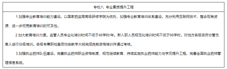 專業(yè)人才隊伍建設(shè)取得較大進(jìn)展。培養(yǎng)一批具備國際先進(jìn)水平的高層次審評員、檢查員和檢驗(yàn)檢測領(lǐng)域?qū)I(yè)素質(zhì)過硬的學(xué)科帶頭人。藥品監(jiān)管隊伍專業(yè)素質(zhì)明顯提升,隊伍專業(yè)化建設(shè)取得積極成效。